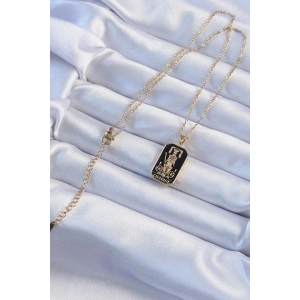 316L Çelik Zincir Altın Renk Zirkon Taşlı Siyah Mineli Kız Figürlü Tarot Kolye