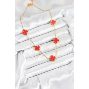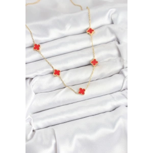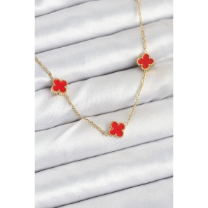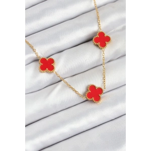 316L Çelik Zincir Gold Kırmızı Renk Yonca Kadın Kolye