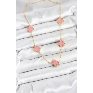316L Çelik Zincir Gold Pembe Renk Yonca Kadın Kolye