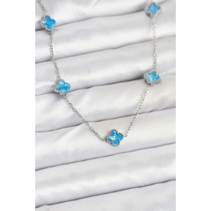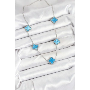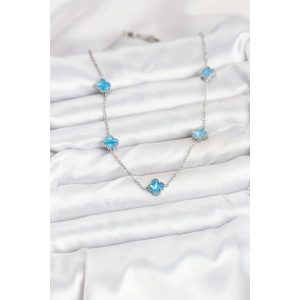 316L Çelik Zincir Gümüş Buz Mavisi Renk Yonca Kadın Kolye