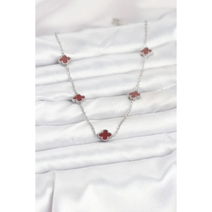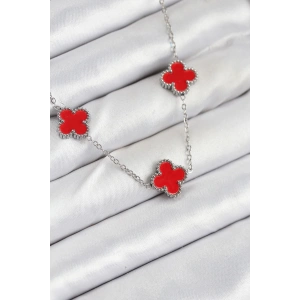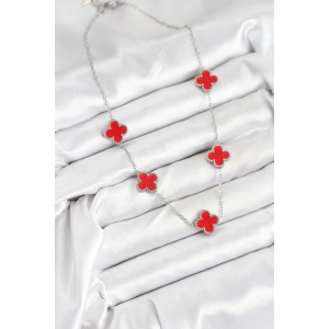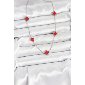 316L Çelik Zincir Gümüş Kırmızı Renk Yonca Kadın Kolye
