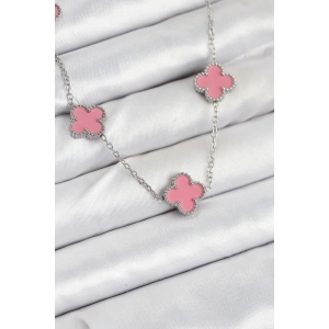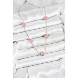 316L Çelik Zincir Gümüş Pembe Renk Yonca Kadın Kolye