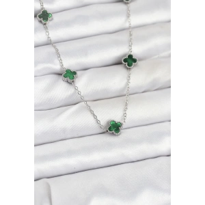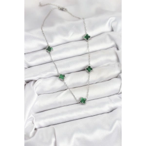 316L Çelik Zincir Gümüş Renk Yeşil Baby Boy Yonca Kadın Kolye