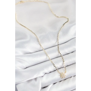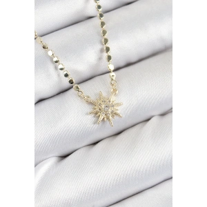 Pirinç Zirkon Taşlı Kutup Yıldızı Model Ezme Zincir Gold Renk Kadın Kolye