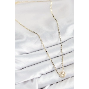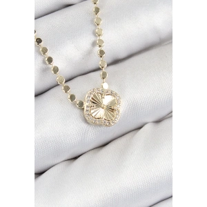Pirinç Zirkon Taşlı Yonca Model Ezme Zincir Gold Renk Kadın Kolye