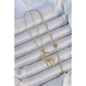 316L Çelik Zincir Altın Renk Zirkon Taşlı Aslan Figürlü Tarot Kolye