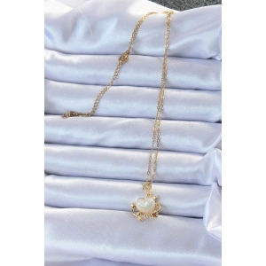 316L Çelik Zincir Altın Renk İşlemeli Zirkon Taşlı Ay Kolye