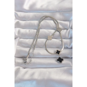 316L Çelik Gümüş Renk İtalyan Zincirli Mineli Yonca Kolye