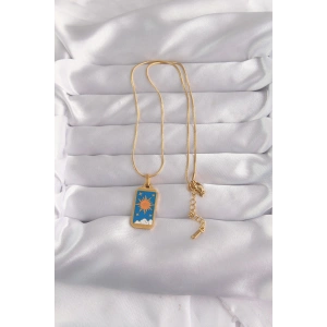 316L Çelik Gold Renk Mavi Mineli Güneş Model Tarot Kolye