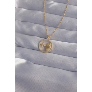 316L Çelik Gold Renk Beyaz Mineli Tarot Kolye