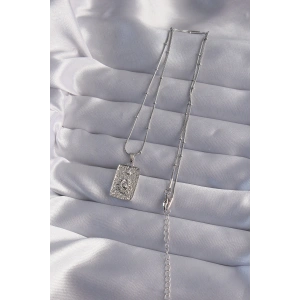 316L Çelik Zincir Gümüş Renk Zirkon Taşlı Tarot Kolye