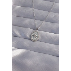 316L Çelik Zincir Gümüş Renk Zirkon Taşlı Yıldız Figürlü Oval Kolye