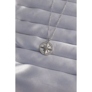 316L Çelik Zincir Gümüş Renk Zirkon Taşlı Kabartmalı Kutup Yıldızı Kolye