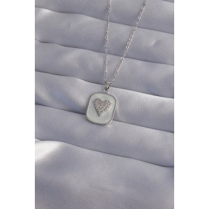 316L Çelik Zincir Mermer Desenli Gümüş Renk Zirkon Taşlı Kalp Model Kolye