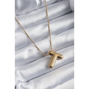 316L Çelik Gold Renk Bubble "T" Harf Model Kadın Kolye
