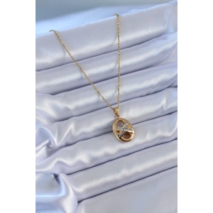 316L Çelik Gold Renk Zirkon Taşlı Kadın Kolye
