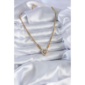 316L Çelik Gold Renk Zincir Zirkon Taşlı Kalp Model Kadın Kolye