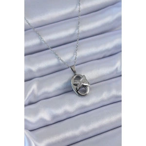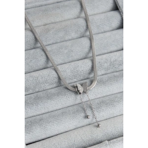 316L Çelik Gümüş Renk İtalyan Zincir Model Simli Kelebek Figür Kadın Kolye