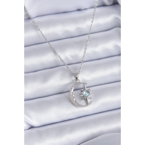 316L Çelik Gümüş Renk Zirkon Taşlı Ay Yıldız Model Kadın Kolye