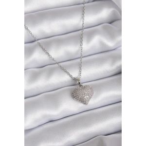 316L Çelik Gümüş Renk Zirkon Taşlı Kalp Model Kadın Kolye