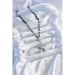 Gümüş Renk Siyah Boncuk Zirkon Taşlı Pirinç Yıldız Model VİP Seri Kadın Kolye