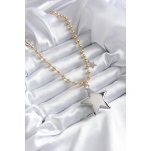 Pirinç Gold Renk Topçuk Zincir Gümüş 3D Yıldız Model Yıldız Detay VİP Kadın Kolye