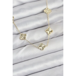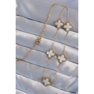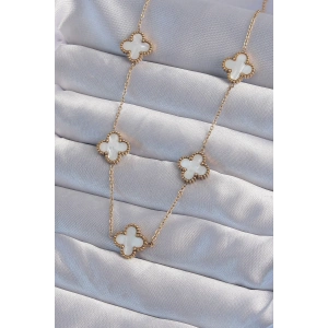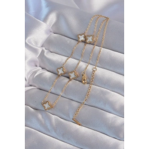 316L Çelik Gold Renk Beyaz Sedefli Yonca Kolye