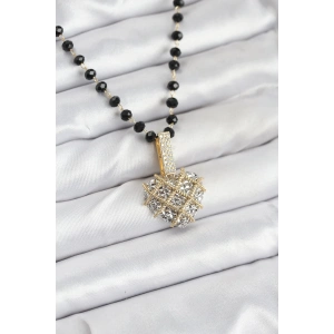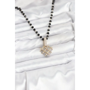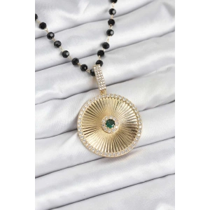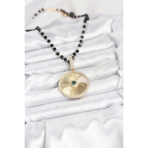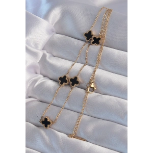 316L Çelik Gold Renk Siyah Mineli Yonca Kolye