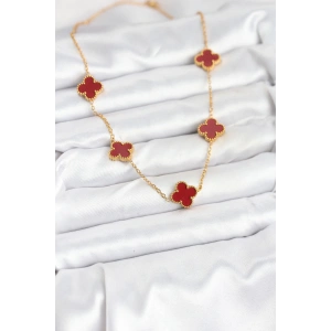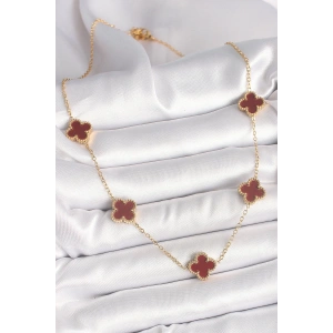 316L Çelik Gold Renk Zincir Bordo Yonca Kadın Kolye