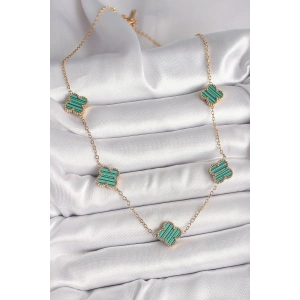 316L Çelik Zincir Gold Renk Yeşil Baby Boy Yonca Kadın Kolye