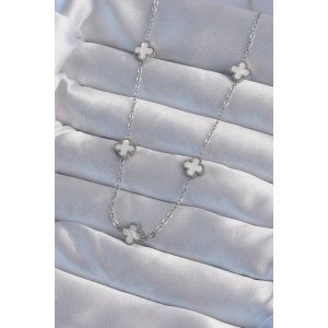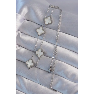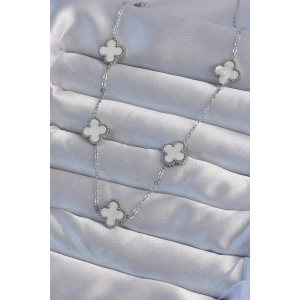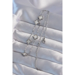 316L Çelik Gümüş Renk Beyaz Sedefli Yonca Kolye