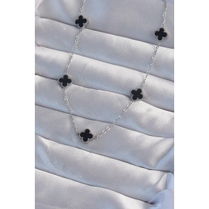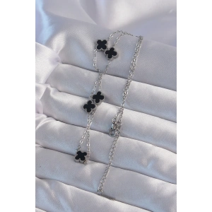 316L Çelik Gümüş Renk Siyah Mineli Yonca Kolye