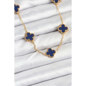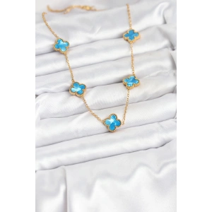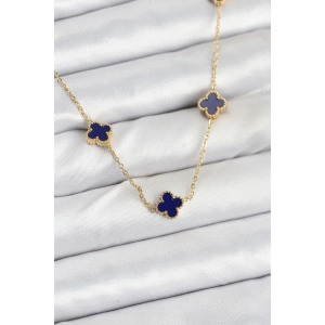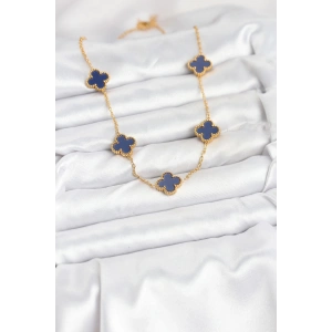 316L Çelik Zincir Gold Renk Lacivert Yonca Kadın Kolye