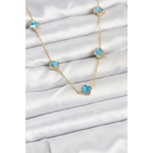 316L Çelik Zincir Gold Buz Mavisi Renk Yonca Kolye