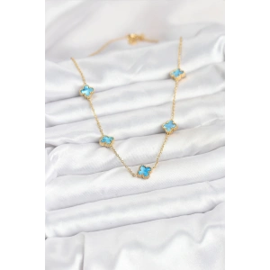 316L Çelik Zincir Gold Renk Buz Mavisi Baby Boy Yonca Kadın Kolye
