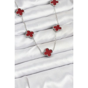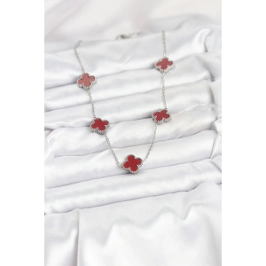 316L Çelik Zincir Gümüş Renk Bordo Renk Yonca Kadın Kolye