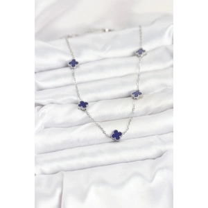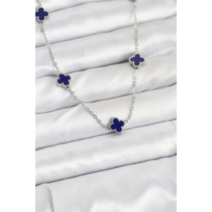 316L Çelik Zincir Gümüş Renk Lacivert Baby Boy Yonca Kadın Kolye