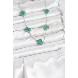316L Çelik Zincir Gümüş Renk Yeşil Yonca Kadın Kolye