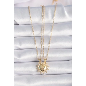 316L Çelik Zirkon Taşlı Güneş Model Gold Renk Kadın Kolye