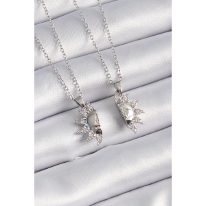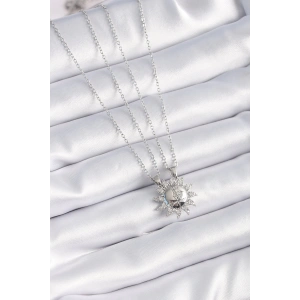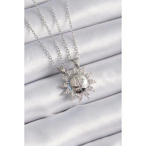 316L Çelik Gümüş Renk Zirkon Taşlı Güneş Model İşleme Yazı Detay Arkadaşlık Kolyesi