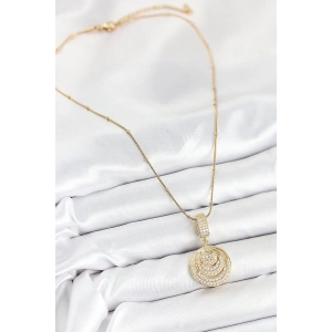 316L Çelik Zirkon Taşlı Çember Model Gold Renk Kadın Kolye