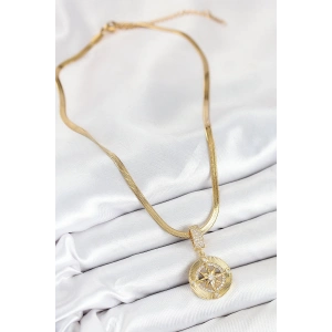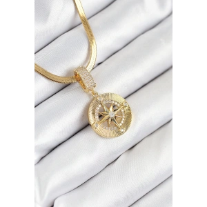 316L Çelik Zirkon Taşlı Pusula Model Gold Renk Kadın Kolye