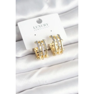 Pirinç Gold Renk Taşlı Halka Kadın Küpe