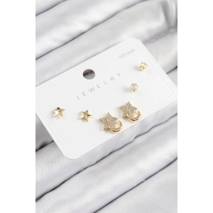 Pirinç Gold Renk Yıldız Model 925 Gümüş Çivili Kadın Küpe Seti