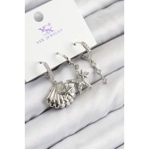 Pirinç Gümüş Renk Zirkon Taşlı Halka Model Kadın Küpe