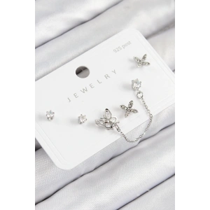 316L Çelik Gümüş Beyaz Renk 3 Boy Yonca Küpe Seti