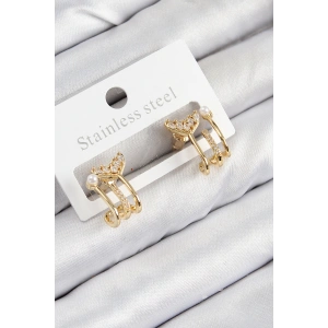 Pirinç Zirkon Taşlı Kıvrımlı Model Gold Renk Kadın Küpe