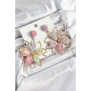 Pirinç Rainbow Çiçek Model Gold Renk Kadın Hasır Küpe