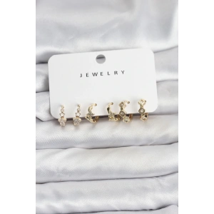 Zirkon Taşlı Gold Renk Pirinç Kadın Küpe Seti