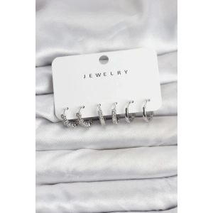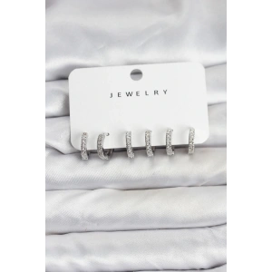 Zirkon Taşlı Pirinç Gümüş Renk Halka Kadın Küpe Seti